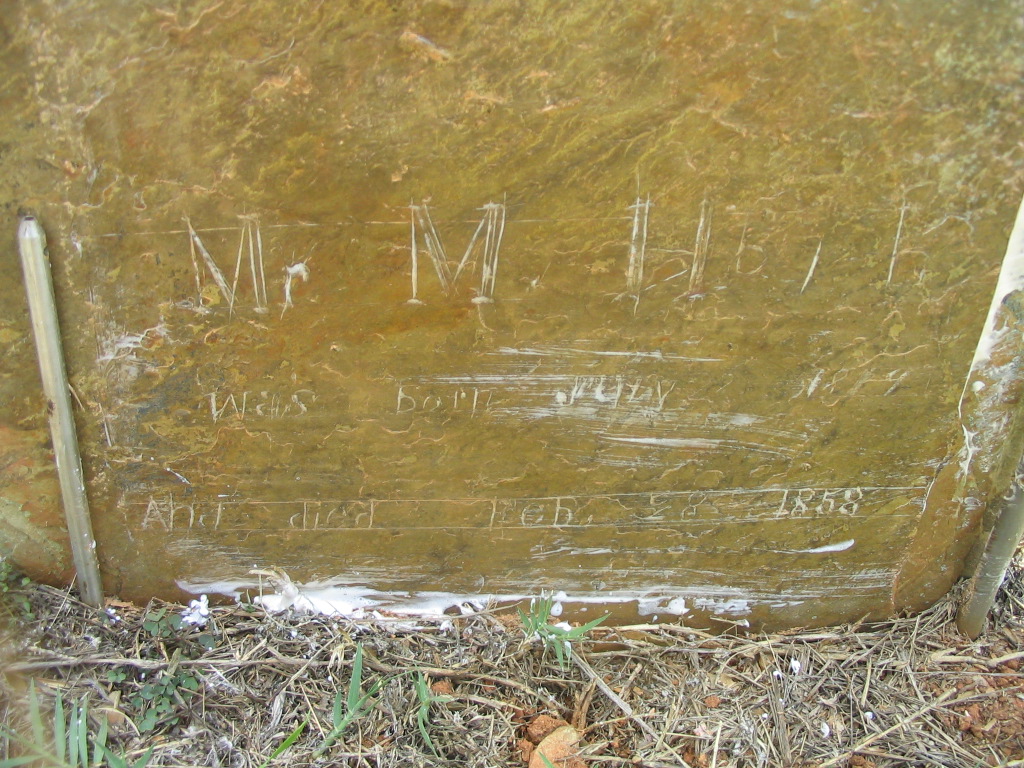 Found the Moses Hough tombstone during a family visit to the Clear Creek graveyard on June 17, 2006. The dates are very difficult to read, but determined it was 1858.